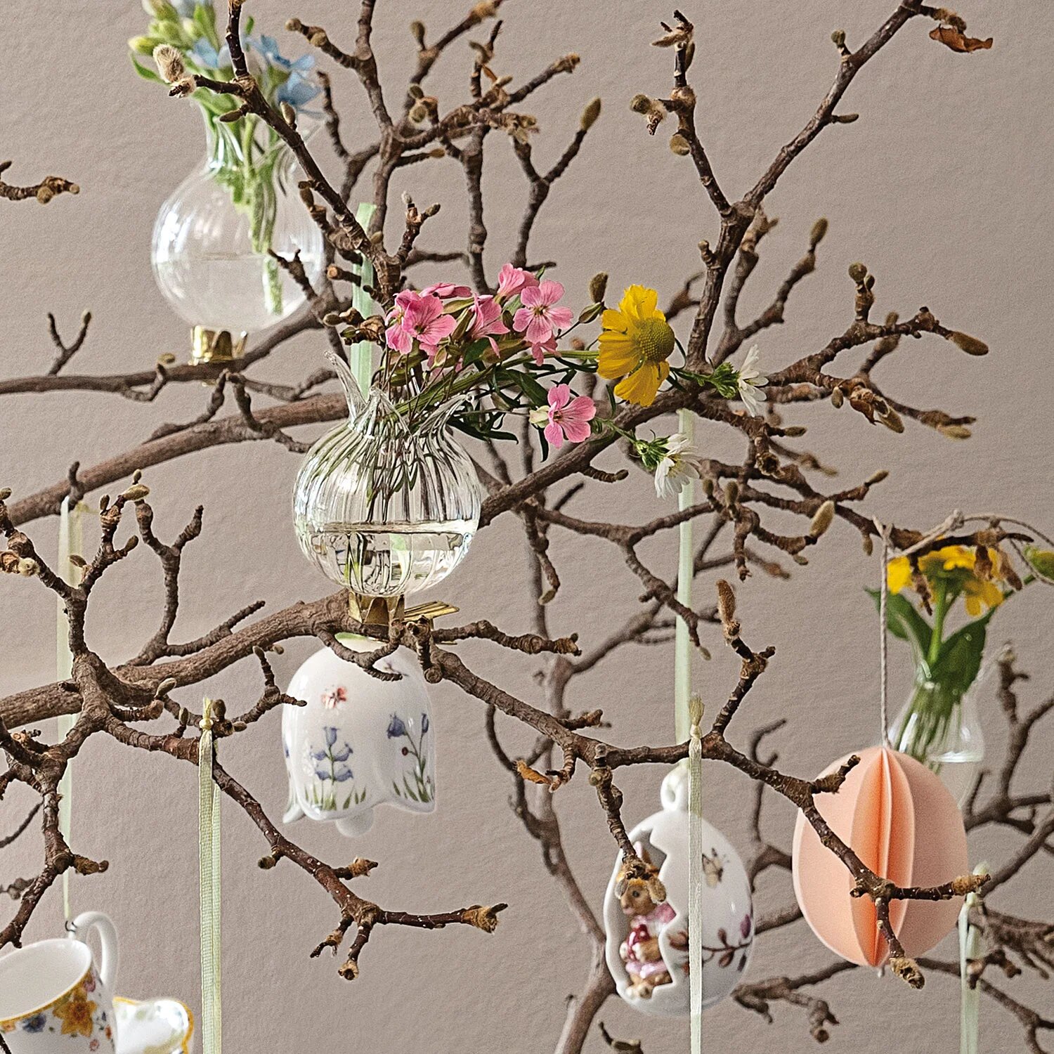 Bu oynaq naxışda bahar ruhu ilə dolu rəngli, pastel dünya ətrafında sayrışan dovşanlar var! Fincanlar, qablar və altlıqlar heyranedici bir görünüş əlavə edir.