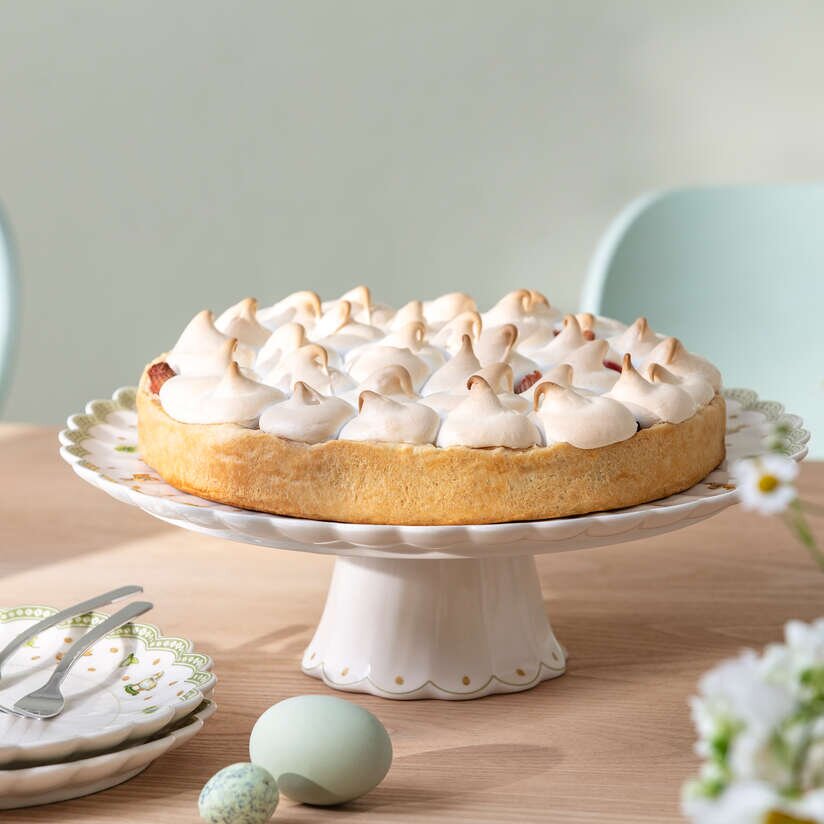 Bu oynaq naxışda bahar ruhu ilə dolu rəngli, pastel dünya ətrafında sayrışan dovşanlar var! Fincanlar, qablar və altlıqlar heyranedici bir görünüş əlavə edir.