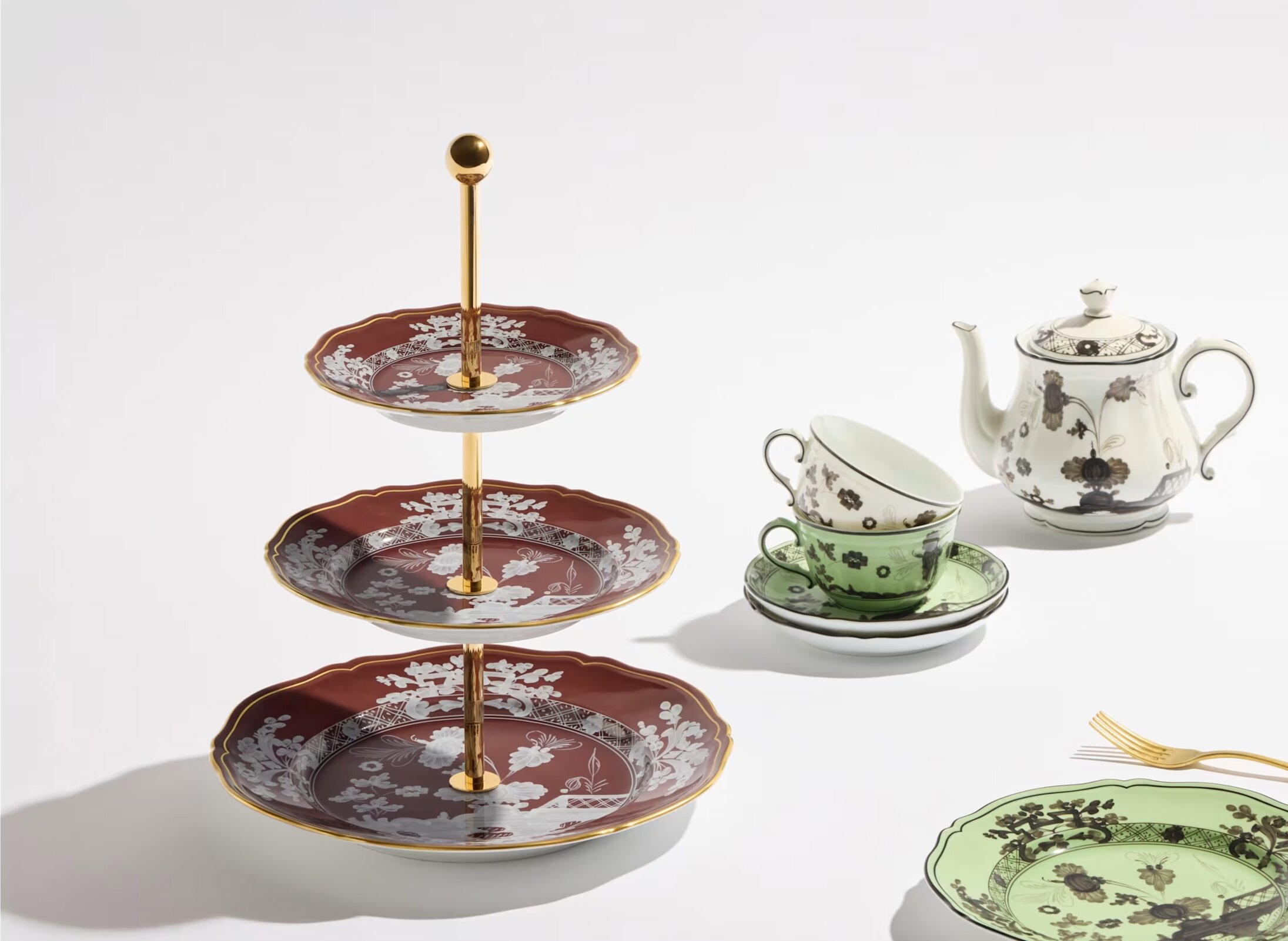A tribute to porcelain craftsmanship, Ginori 1735's Oriente Italiano collection harmoniously blends tradition with innovation, showcasing Italian creativity, color, and artistry. <br> Each piece, from Oriente Italiano dinner plates to tea and coffee services to home decor accessories, represents a fusion of Oriental decorative influences and Italian manufacturing excellence. Meticulously crafted, these items enhance the enduring beauty of porcelain and elevate the joy of shared experiences. The classic “a Garofano” floral motif, inspired by Oriental design and rooted in Faenza ceramics, is vividly brought to life with bold colors and gilded accents. This collection encourages you to experiment with striking color combinations, creating a vibrant and playful ambiance that mirrors your personal style. Infuse your table with the allure of Oriente Italiano and transform any gathering into a spectacular visual celebration.