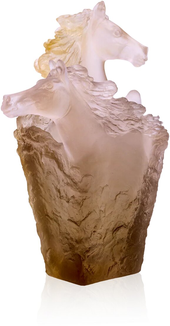 Daum демонстрирует свое исключительное мастерство, передаваемое из поколения в поколение, в декоре ваз Cavalcade Prestige. В хрустале запечатлен табун лошадей, свободно и бесстрашно бегущих на воле. Лошади изящны, с красиво проработанными очерченными головами и решительным взглядом. Синие и серые тона раскрывают энергичный, дикий дух этих прекрасных созданий.