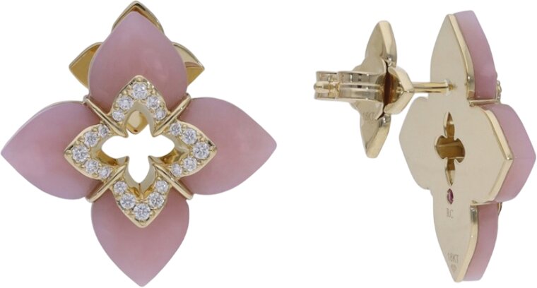 Рубин: 2 шт., 0.01 карат Белые бриллианты: 40 шт., 0.19 карат Розовый опал: 8 шт., 5.68 карат |